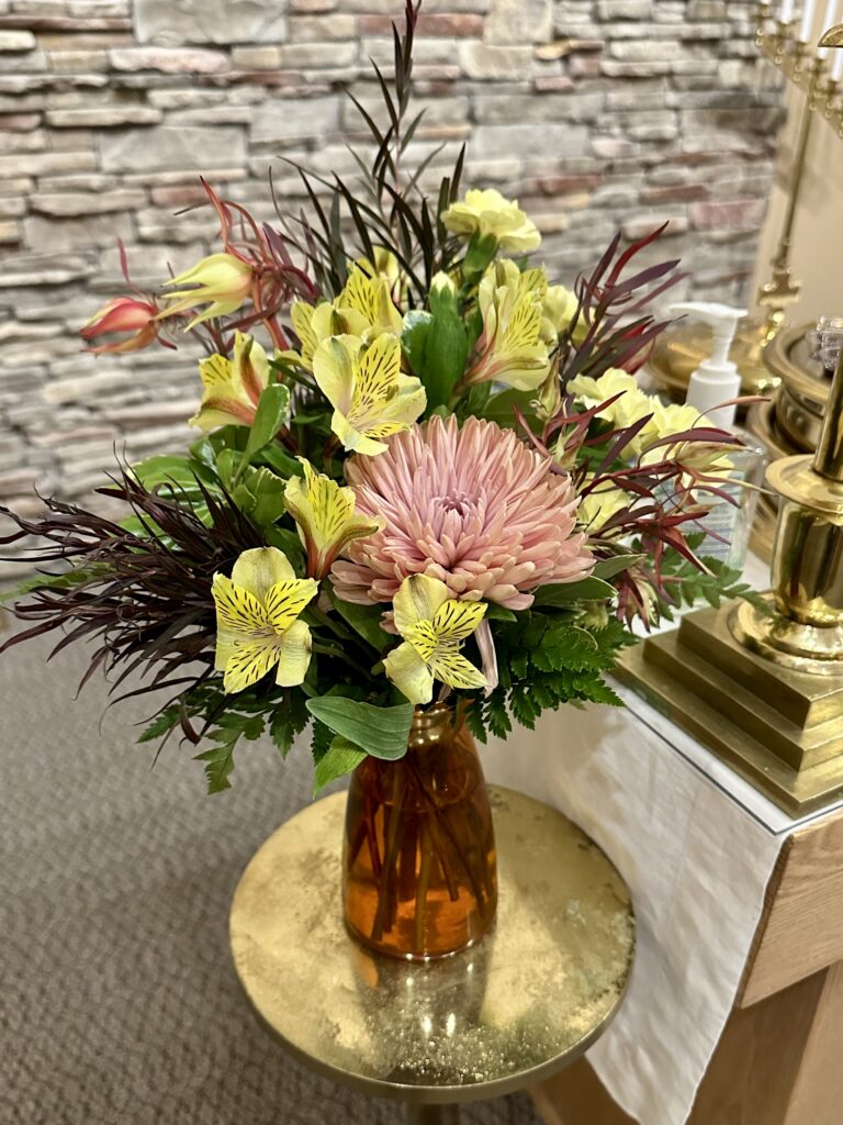 We have arranged with a local florist to provide bouquets for worship and communicate with them each month for arrangements. The florist will bill individuals at the time they have signed up for flowers. Arrangements are delivered each Saturday.